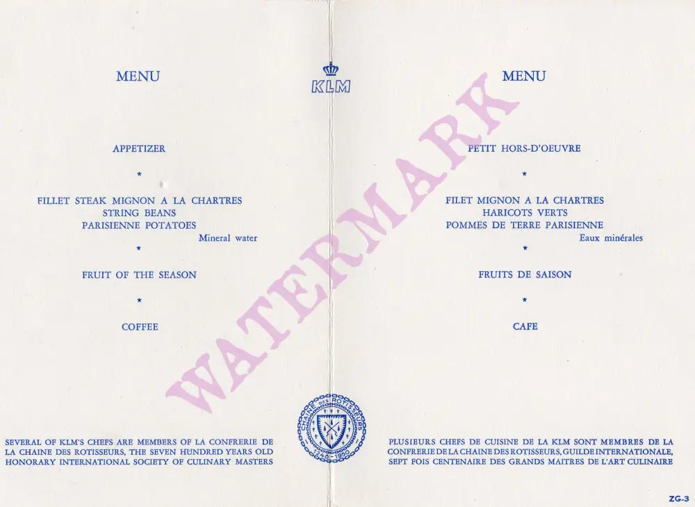 Each order includes a print of the interior menu.