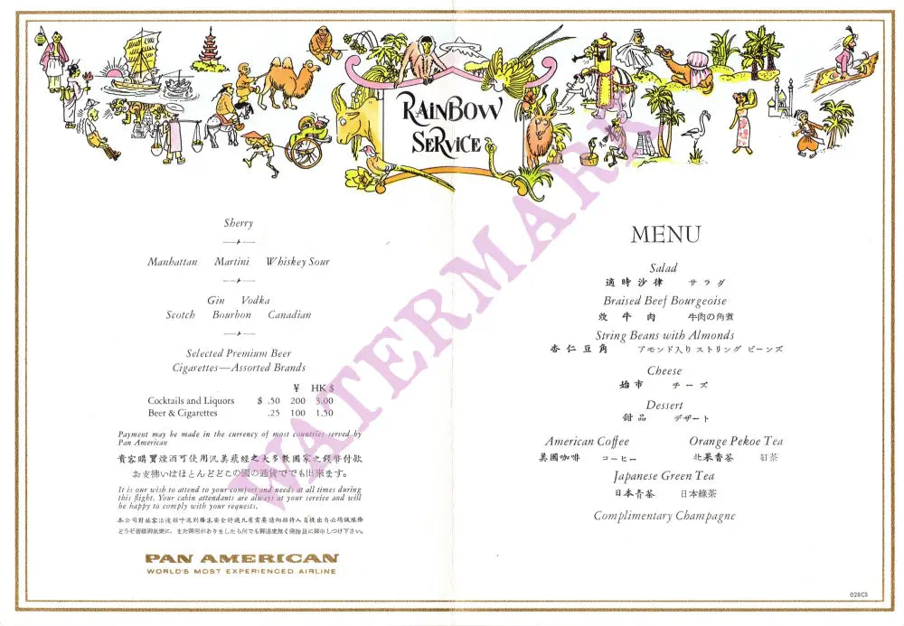 Jacques Liozu, the illustrator of this Pan American in-flight menu art, was born in Albi in the south of France in 1910 and died in 1974. He is best known for his maps, but he also illustrated postcards as well as educational and historical stories for young people. He was most active in the 1940s and 50s.