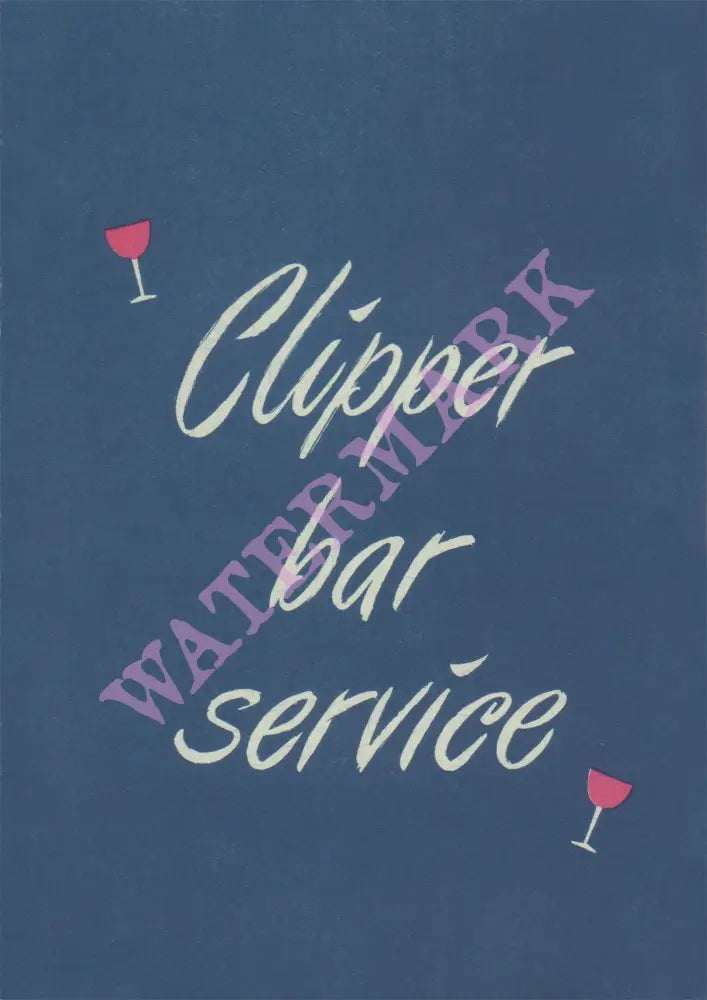 This menu is from the bar of one of the early Pan Am Clippers – a ‘flying boat’ with enough range to cross the Atlantic and Pacific oceans. Produced by Boeing, the American airline had nine Boeing 307 Stratoliners in service between 1938 to 1941.
