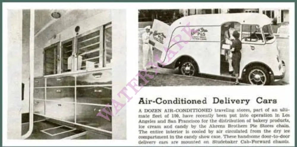 Based in Denver and Los Angeles, Ahrens Bros. made famous chiffon pies with Graham Kracker Krusts and were hugely popular in the 1930s. Customers could either buy direct from the company stores or have pies brought to their doors in a fleet of stylish delivery cars, made by the Studebaker Automobile company. The pies and cakes were kept in perfect condition in dry ice compartments.