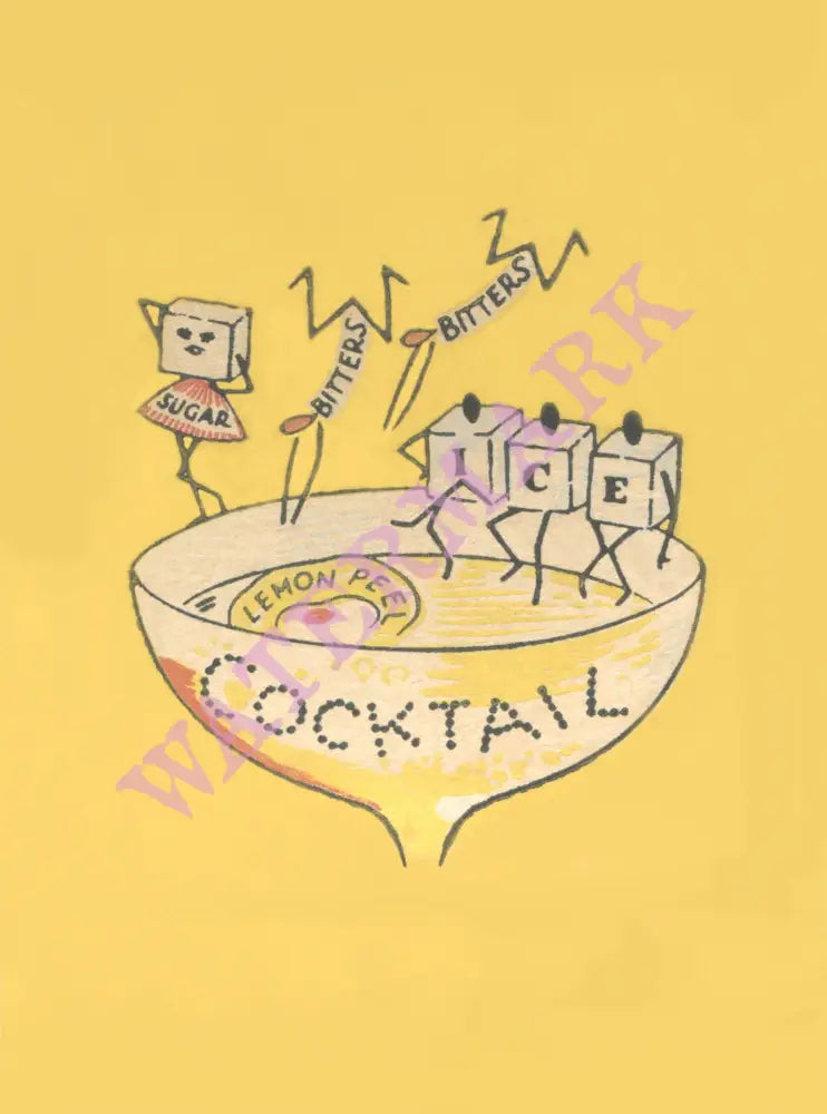 This delightful 1930s cocktail image cover shows the ingredients for a brandy cocktail.