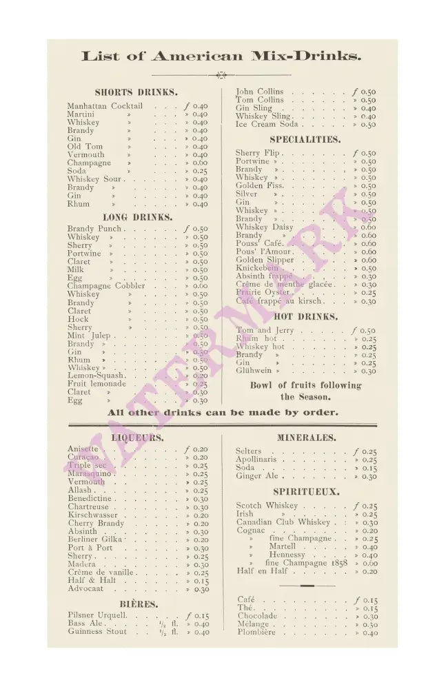 However, there are clues in the list of drinks – on offer is a champagne cognac from 1858. There is also a reference to a Tom and Jerry, a hot drink made of eggnog, brandy and rum, which was invented in 1825.