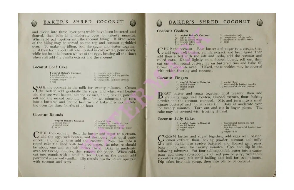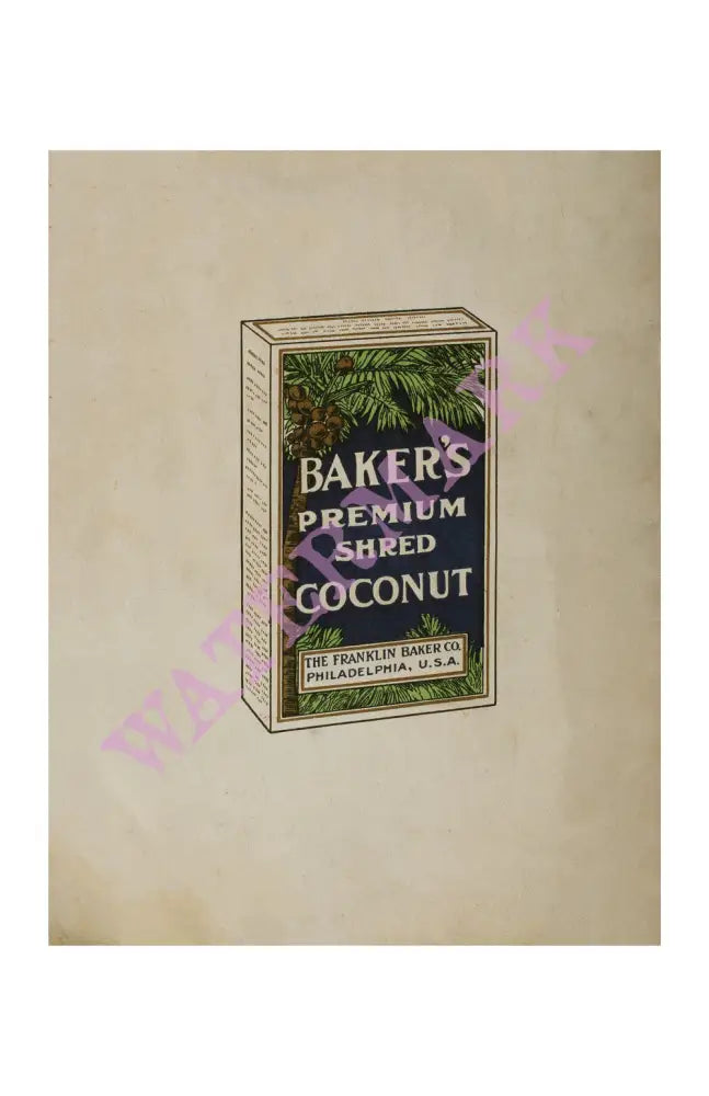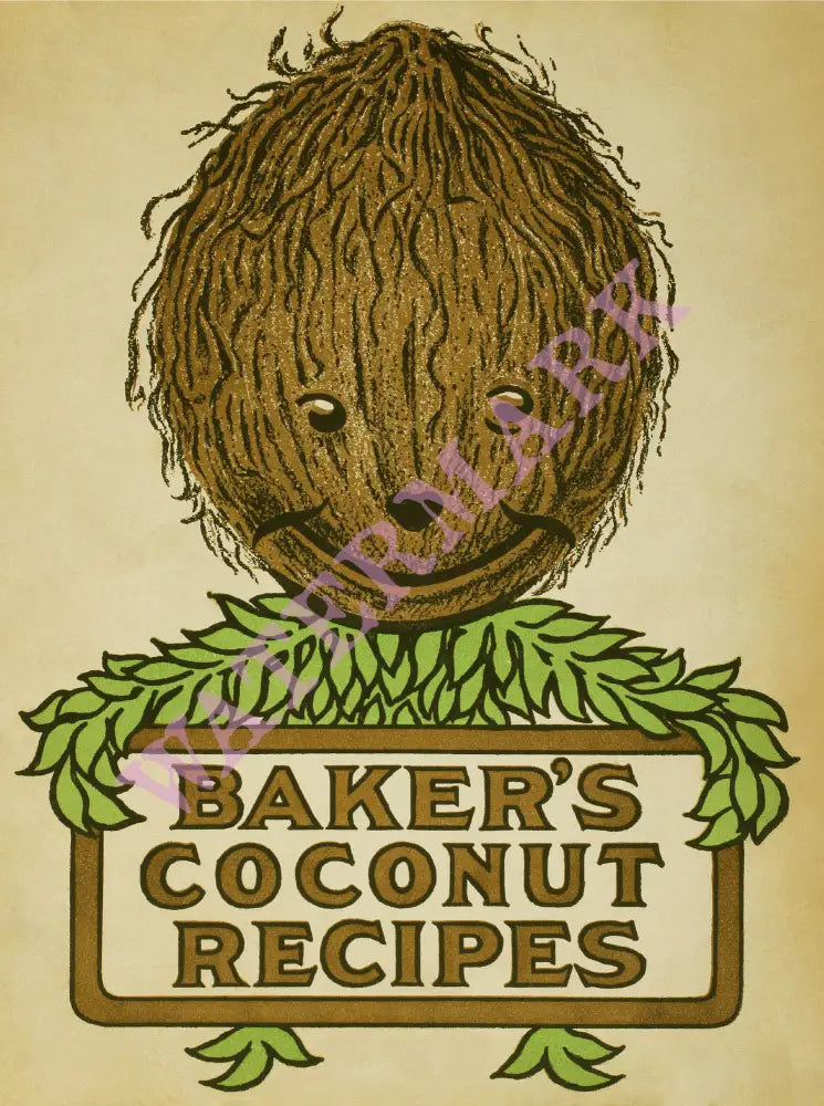 This is the cover of a recipe book that was published by the Franklin Baker Company. In 1897, Mr Baker, from Philadelphia, recognized the potential of coconut as a food source. He and his son travelled to the Philippines to open processing plants that sent this nutrient-rich ingredient back to the United States. The family-run company was eventually bought by the General Foods Corporation. The artist is unknown in this 1914 illustration but he did a great job in conveying to people who would have been unfamiliar with the shape and taste of coconuts. that there was nothing to be afraid of. Coconuts, as we all know, make great cakes and desserts!