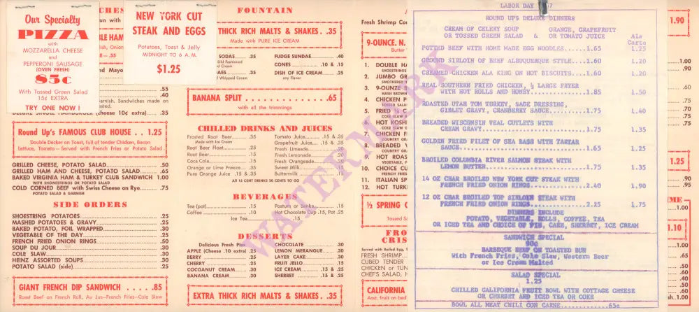 Food offerings were straightforward and fairly priced, with dishes like hamburgers and pot pies freshly prepared. Customers were invited to ‘inspect our stainless steel kitchen any time.’