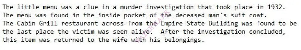 Each product is accompanied by a copy of the interior menu where available.
