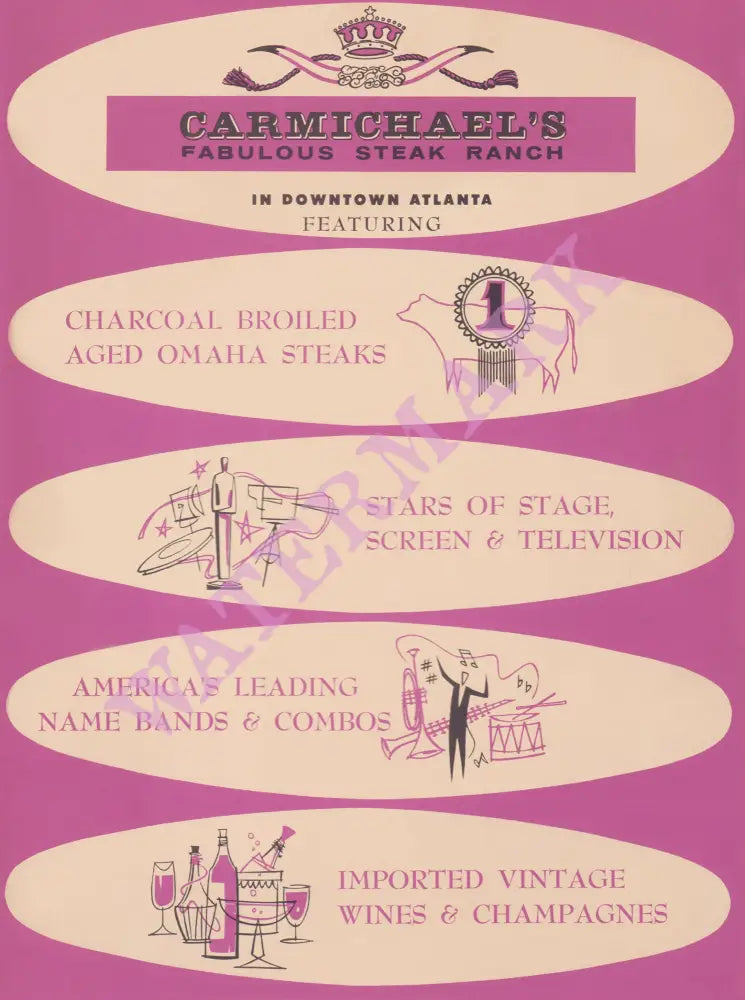 Carmichael's Fabulous Steak Ranch, Atlanta 1960s