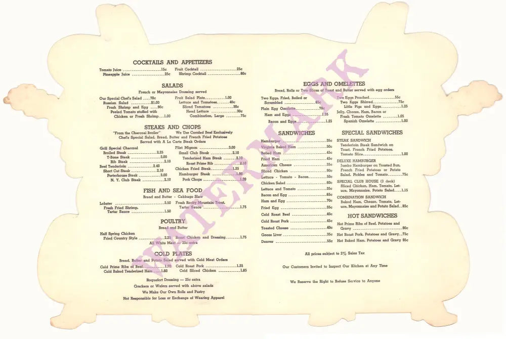 Each order includes a print of the interior menu.