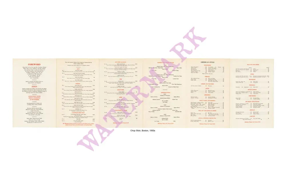 This is the only menu we have seen with a foreword – a note from the management offers to "soothe the palates of the most fastidious" with Chinese or American food. It also warns – in red letters – that intoxicating liquor is strictly prohibited on the premises and that people must only dance with their own escorts. This was Boston dining in the 1950s – we are going to assume that the quality of the food made up for all the rules. There are great graphics on this menu and cute illustrations – look at the feet of the man sitting at the table with his girlfriend. His feet are tiny!