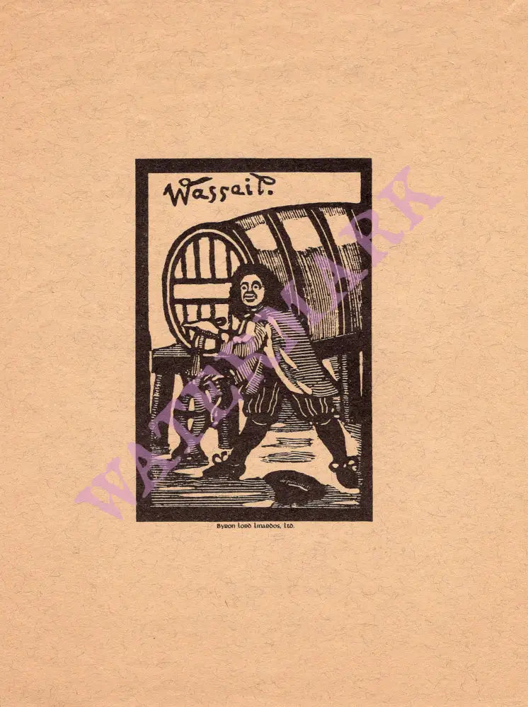 This 1960s menu shows a generously proportioned gentleman drinking wassail, a beverage made from hot mulled cider, ale, or wine and spices, drunk traditionally as part of wassailing, an ancient ritual used to drink to people’s health.