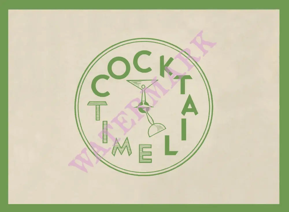 Raise a glass to cocktail hour, when you put aside the worries of the day and mix your favorite drink. This clever image of cocktail glasses acting as the hands of a clock was displayed on cocktail napkins in bars in the 1950s.