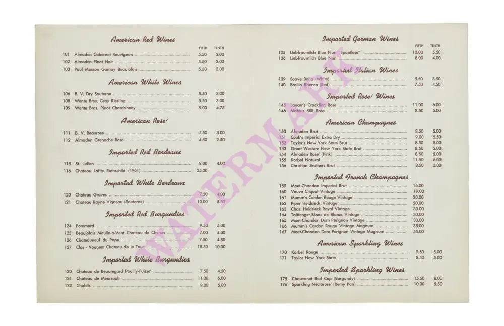 The design of the spare and elegant wine list cover was approved by Sinatra who didn't like "fussy stuff."