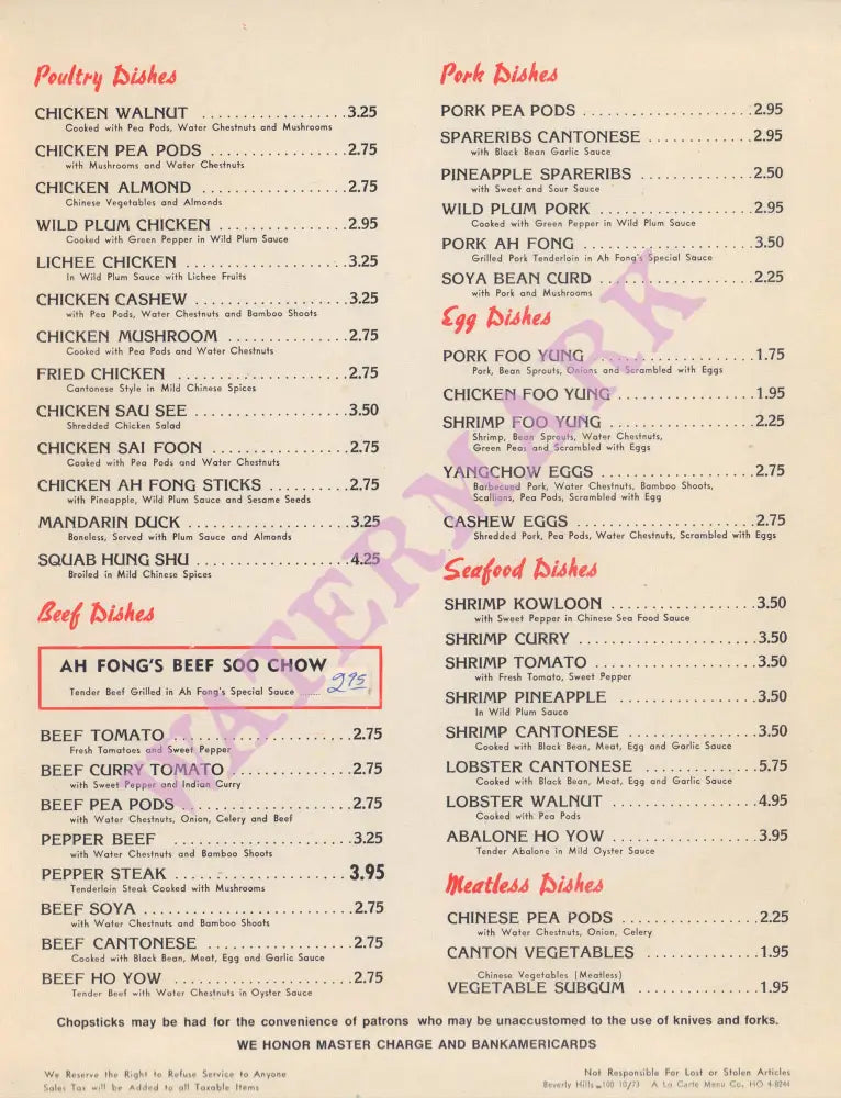 Ah Fong's, Los Angeles 1973