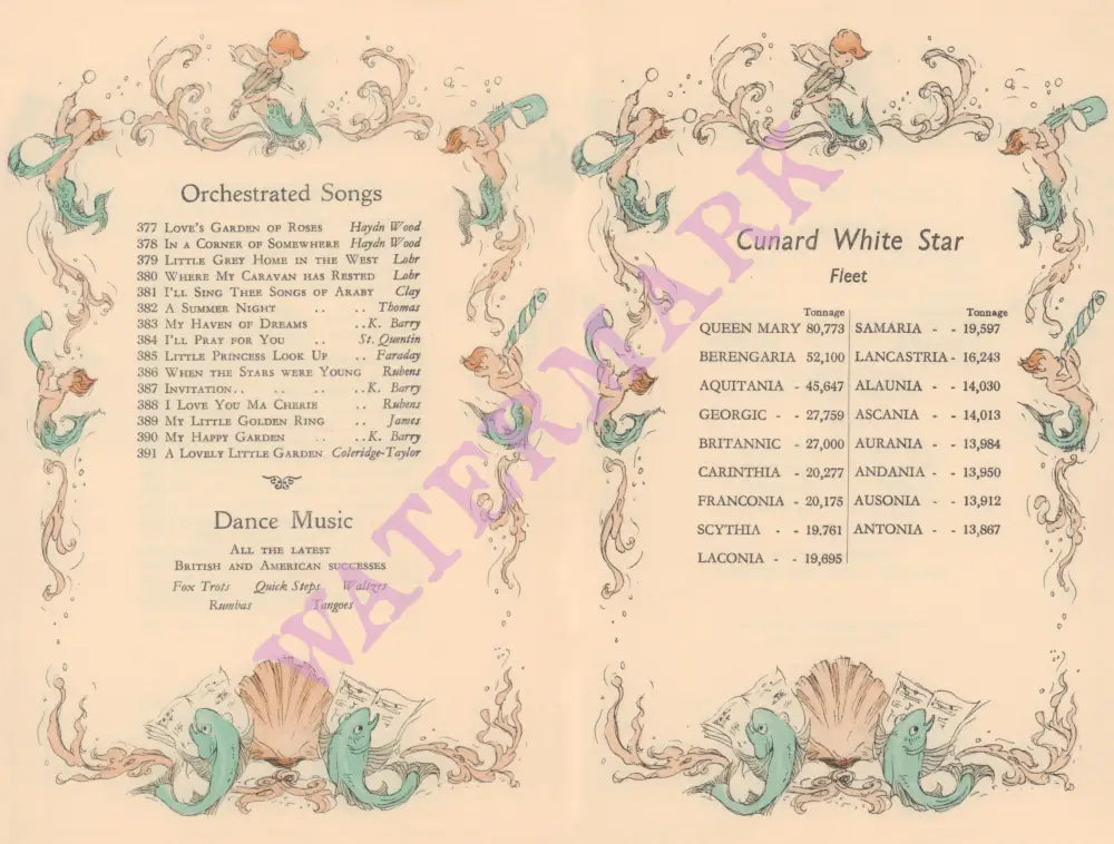 Cunard White Star Music Menu #2 , Alistair K MacDonald 1930s