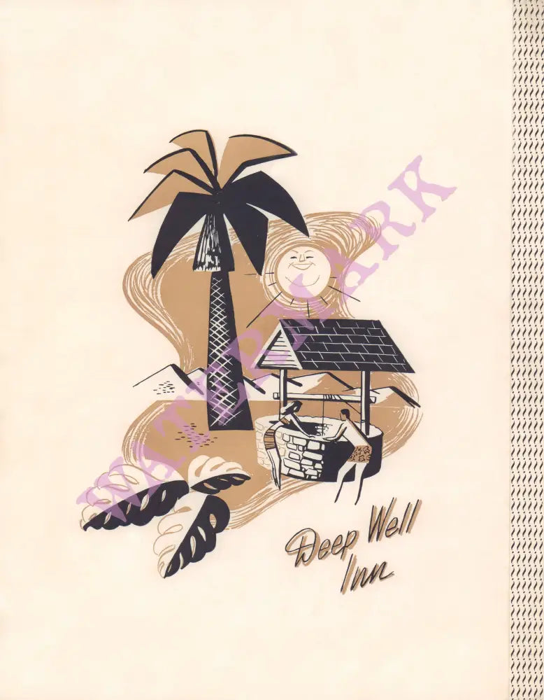 There is no address on this 1950s menu cover in tasteful colors of black and taupe but we assume this restaurant was located in the Deep Well neighborhood, which remains a highly sought after address in Palm Springs today.