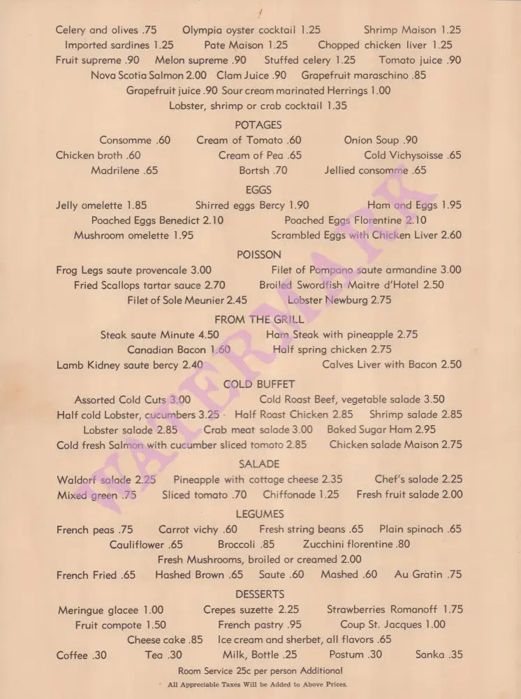 Each order includes a print of the interior menu.