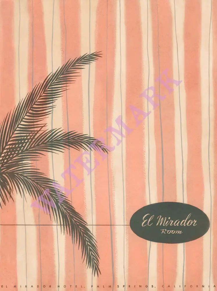 This elegant illustration is from a menu at the El Mirador hotel – described as a ‘magnificent palace of splendor’ when it opened in Palm Springs in 1929. The luxurious hotel attracted a host of celebrities including the scientist Albert Einstein, the artist Salvador Dali and actors such as Shirley Temple and Charlie Chaplin.