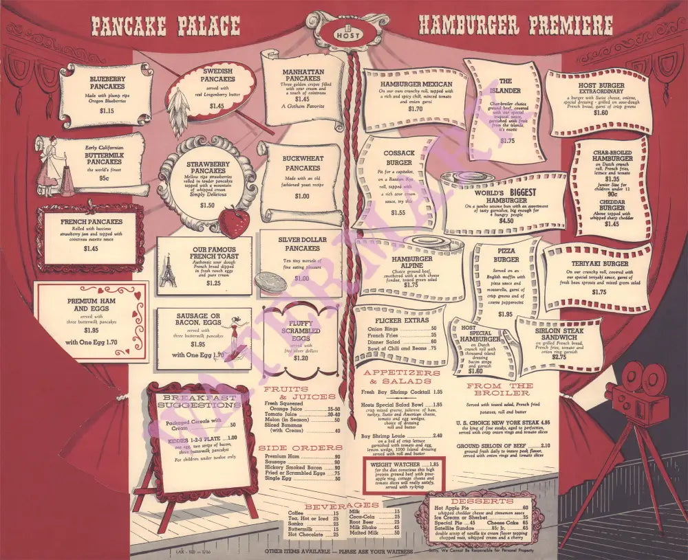 There was hearty fare on offer for passengers – including the ‘world’s biggest hamburger’ which could feed four people for $4.50.
