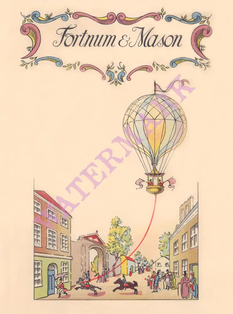 This delightful image of a hot air balloon soaring over a mews was on the front cover of a 1952 menu for the famous Fortnum & Mason department store in Piccadilly, London.