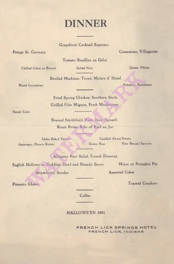 Halloween Dinner, French Lick Springs, Indiana 1921