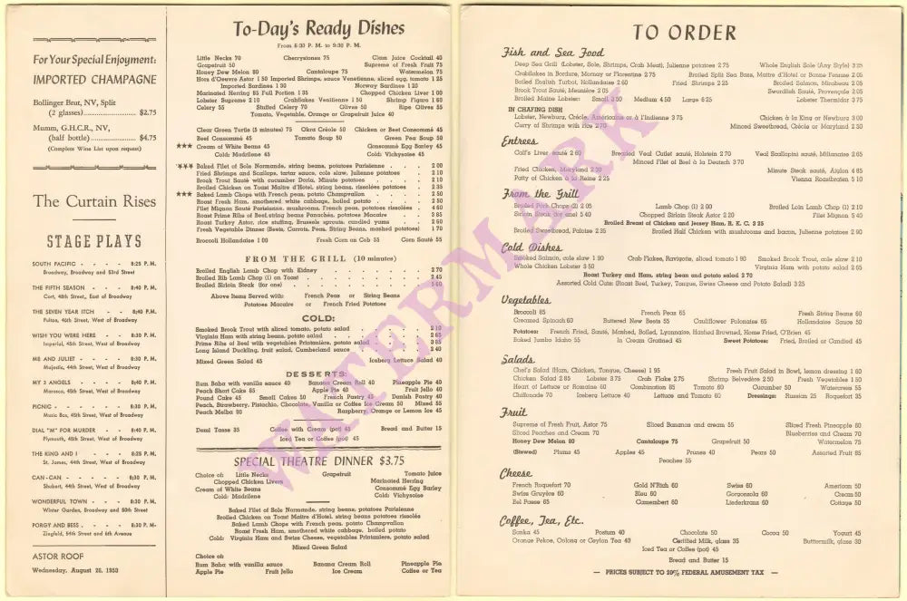 Hotel Astor, New York 1953