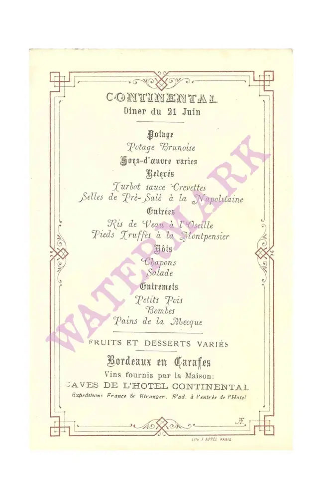 Hotel Continental, Paris 1890s