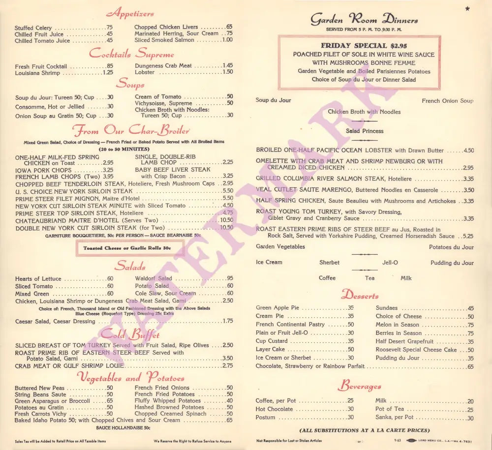 Hotel Roosevelt Garden Room, Hollywood 1963