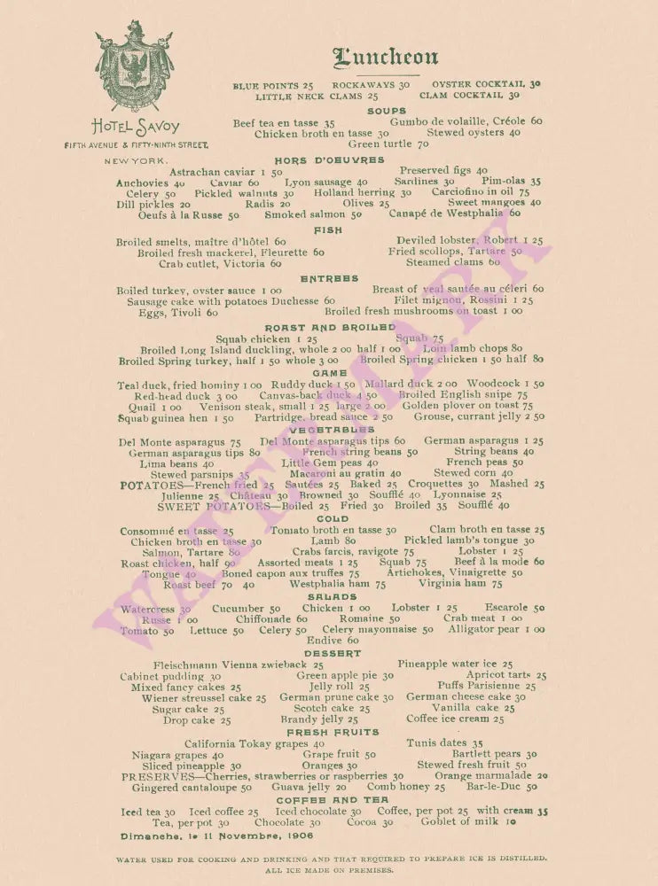 The Hotel Savoy was located on 5th Avenue and 59th Street just across from The Plaza Hotel. The hotel was torn down in 1964 to make way for the 50 story General Motors Building but this location remains one of world’s prime real estate