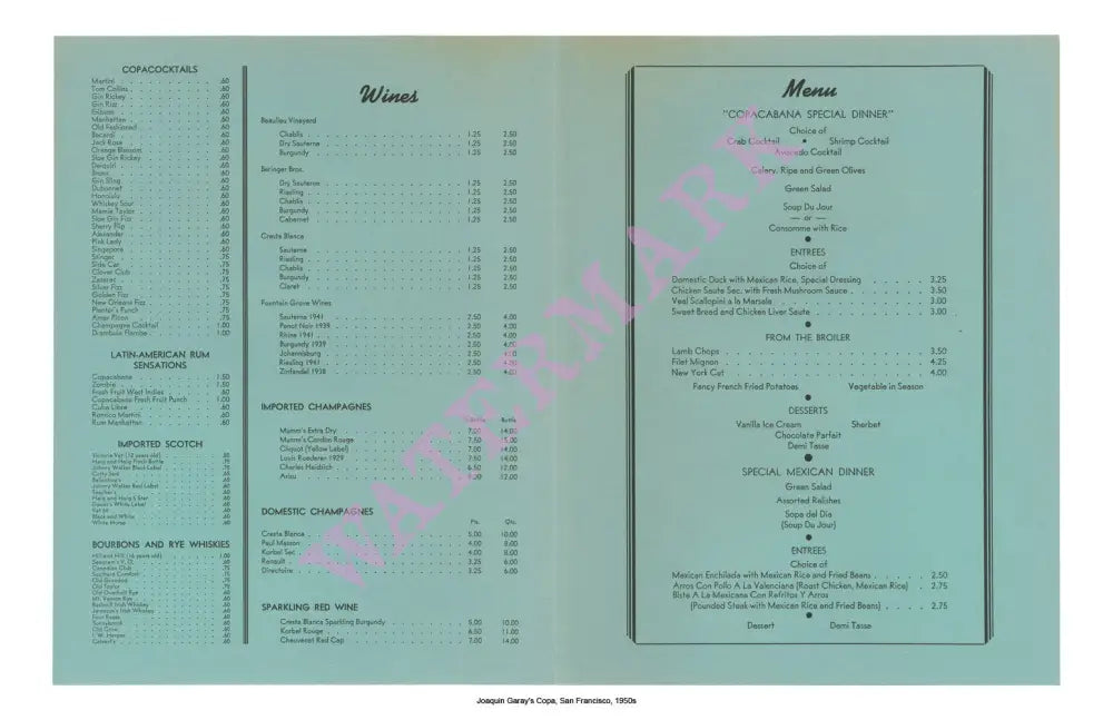Joaquin Garay was a well known orchestra leader and radio personality in the 30s and 40s. He opened the glamorous Copacabana night club in San Francisco's Fisherman's Wharf in September 1941 and it soon became a popular hang out for celebrities of the era. Humphrey Bogart and Lauren Bacall frequented it often during their honeymoon and John Wayne was a big fan. Joaquin released an album "A Night At Joaquin Garay's Copacabana" in the mid-1940s and the sleeve notes read as follows: "Joaquin came to San Francisco from native Mexico at the age of eleven months. His life has been filled with music and excitement. Motion pictures, the stage, vaudeville and radio have been his respective oyster. As owner of COPACABANA, he presides over the floor show functions and dominates the scene with a personality so vibrant, so heartwarming, that many of his patrons average three nights weekly in the Copa. They seem never to capture quite enough of his enthusiasm and down-to-earth showmanship." In 1945 he was the voice of Panchito in Walt Disney's "The Three Caballeros" and later moved to Los Angeles to pursue a rather short-lived movie career.