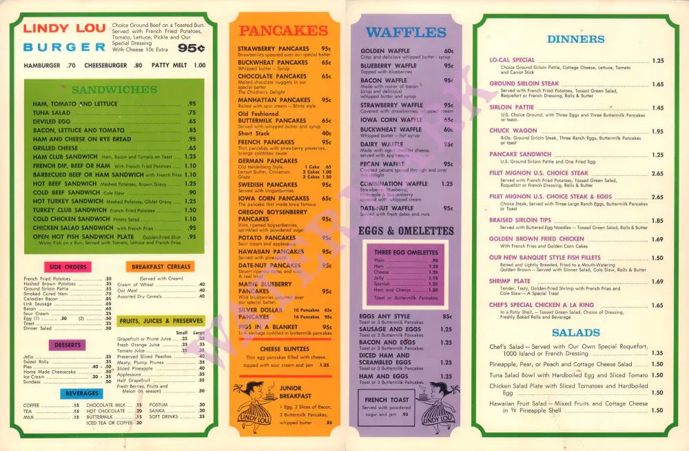 Lindy Lou’s opened in 1959 in Palm Springs, California, and rather ambitiously offered 1001 types of pancakes – all freshly made and not from mixes.