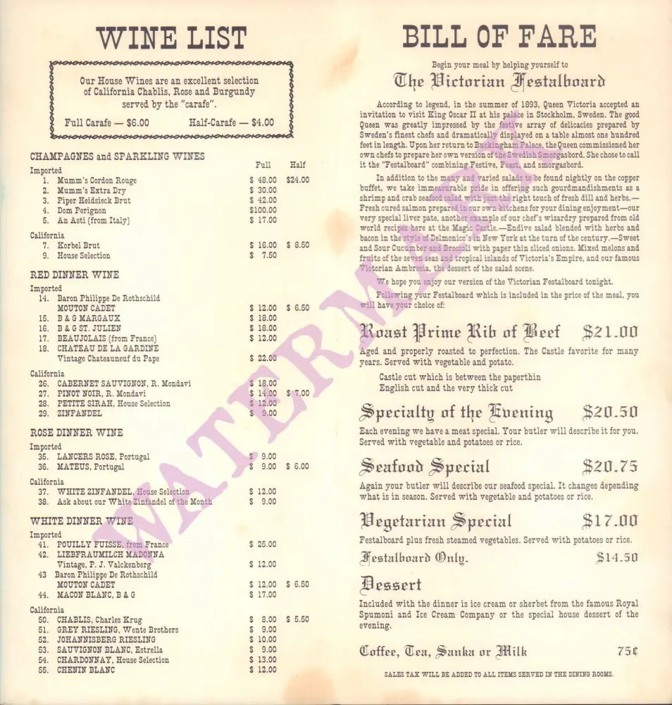 Each order includes a print of the interior menu.