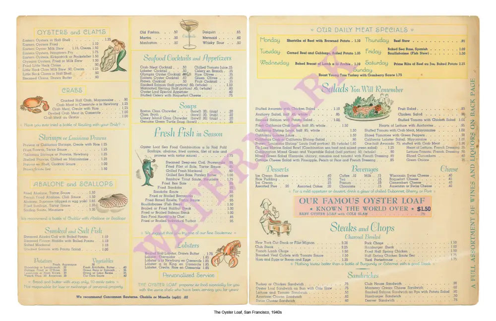 A tiny image of a mermaid opening an oyster shell taken from the Oyster Loaf’s interior menu. The illustrations were created by the celebrated artist and author Andrew Loomis.