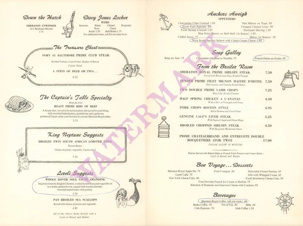 This Mermaid Room menu was from one of the Park Sheraton International hotels and would have been a smart and expensive place to dine.