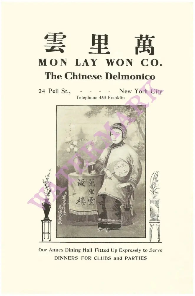 Mon Lay Won was an upscale Chinese restaurant at 24 Pell Street in New York, popular at the turn of the last century.