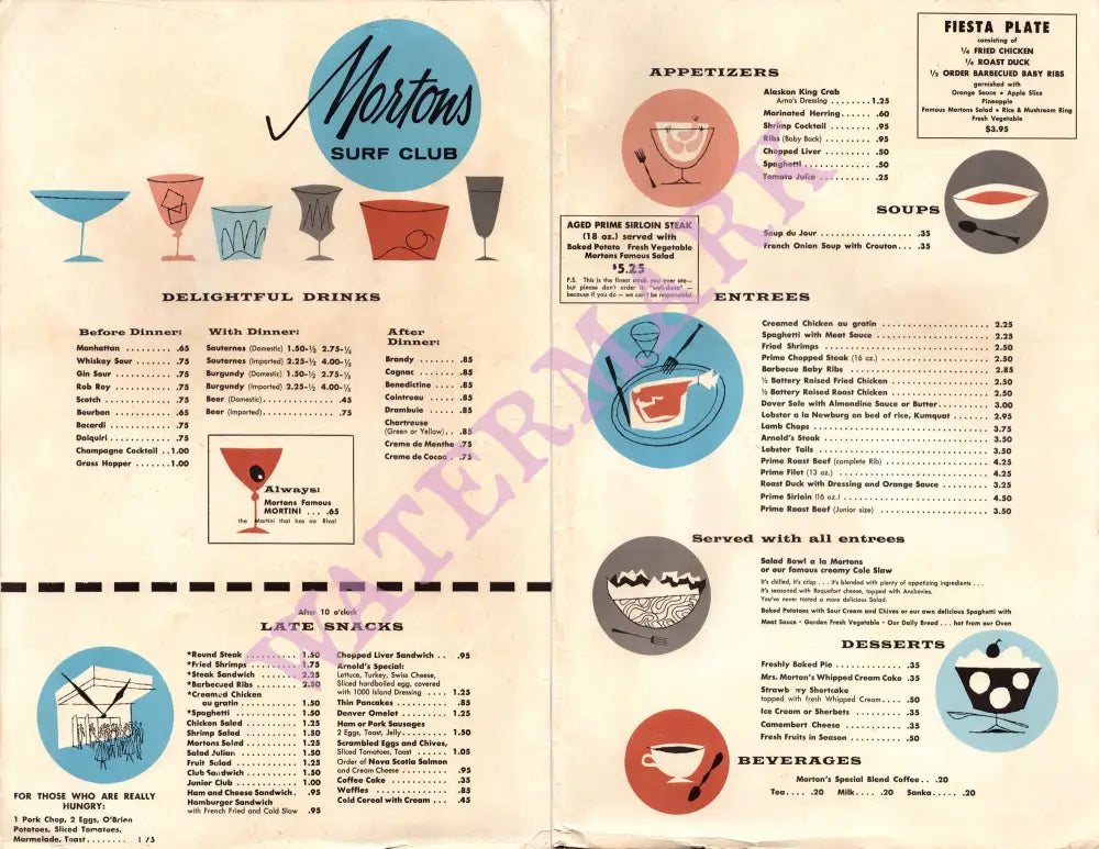 The menu was classic mid-century design featuring items such as the ‘Mortini- the martini that has no rival’ for 65c.