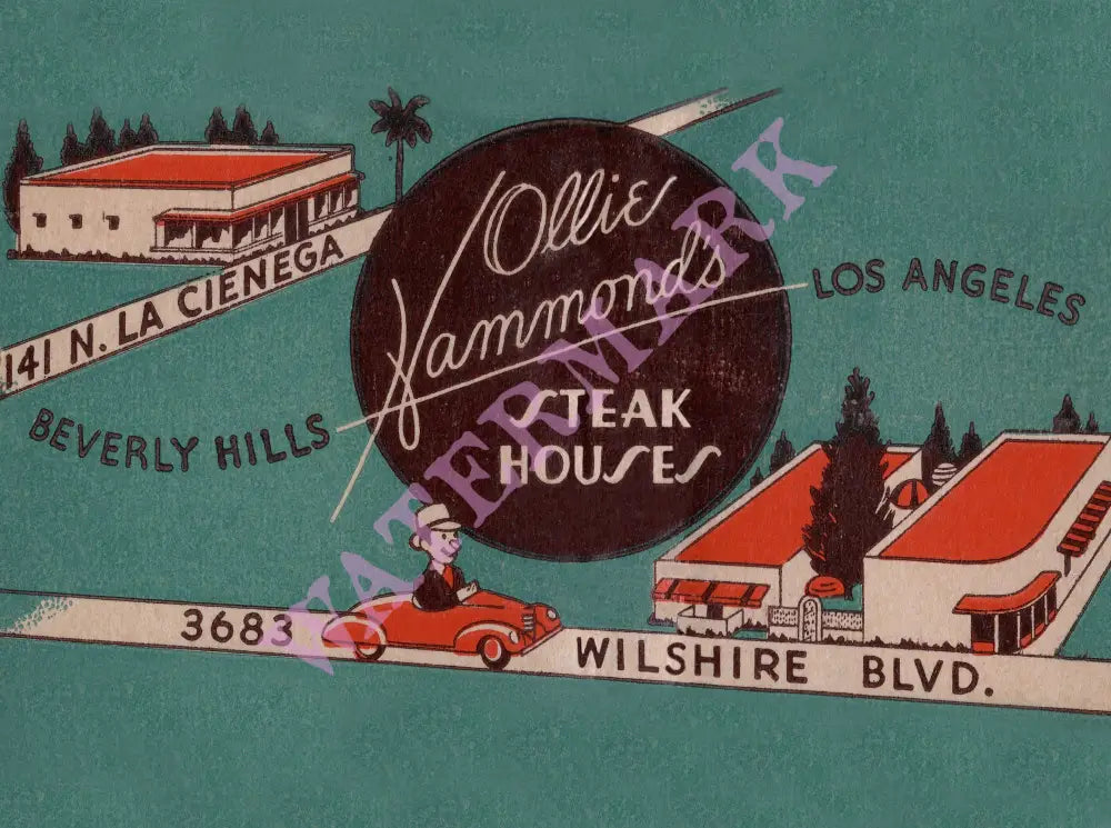Ollie Hammond's Steak Houses were Los Angeles institutions. The first one opened in 1934 and they were open 24 hours a day and were hugely popular with businessmen, actors and families.