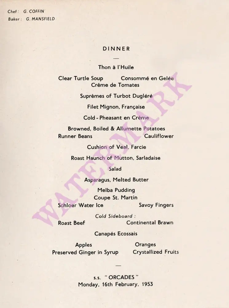This menu illustration was created for the SS Orcades in 1953, an ocean liner primarily serving the UK – England and Australia route. There was a total of six illustrations – we have found two so far - and passengers no doubt kept them as souvenirs since they are so charming.