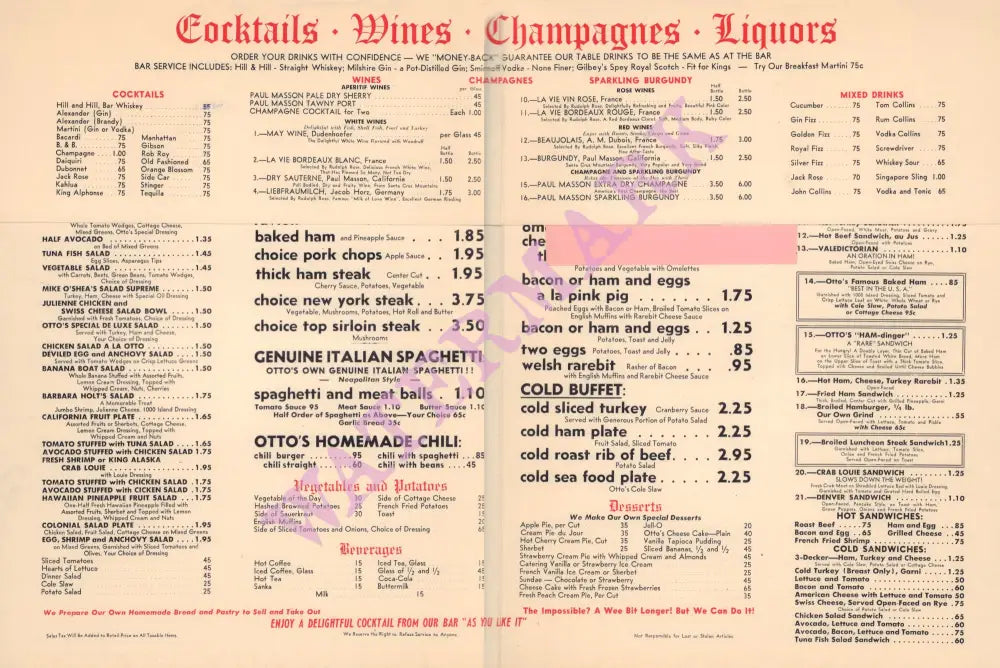 In 1945, as WWII came to a close, Otto Nasser opened his restaurant The Pink Pig in what was then Van Nuys – now, Sherman Oaks, California. The restaurant was modest in décor but had great food – Nasser had started out as a butcher and people came from far and wide for his steaks and pork chops.