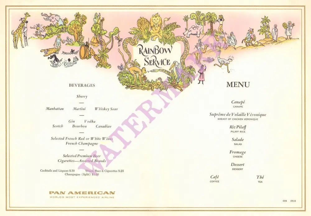 Jacques Liozu, the illustrator of this Pan American in-flight menu art, was born in Albi in the south of France in 1910 and died in 1974. He is best known for his maps, but he also illustrated postcards as well as educational and historical stories for young people. He was most active in the 1940s and 50s.