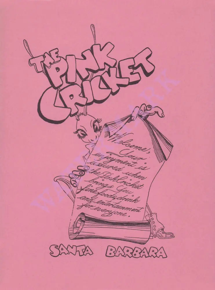 The Pink Cricket – what a great name for a supper club – was located in Santa Barbara, California, from the late 1940s and appears to have done business for a decade or more.