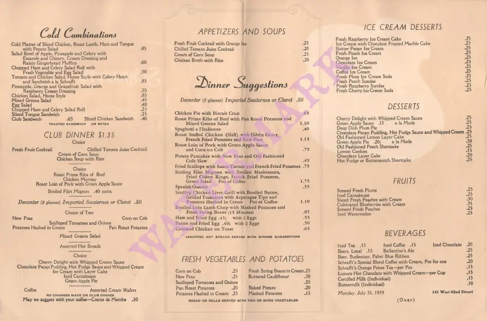 Schrafft’s expanded steadily throughout the 20s and 30s and its employment policies were also far ahead of its time – it employed many women as cooks, supervisors and executives. At its peak, there were 50 outlets in the greater New York metropolitan area. In the 60s the restaurants and the candy store businesses were sold to separate owners. Andy Warhol was a regular customer. He liked their egg salad sandwiches. By the 80s, Schrafft’s had all but disappeared.