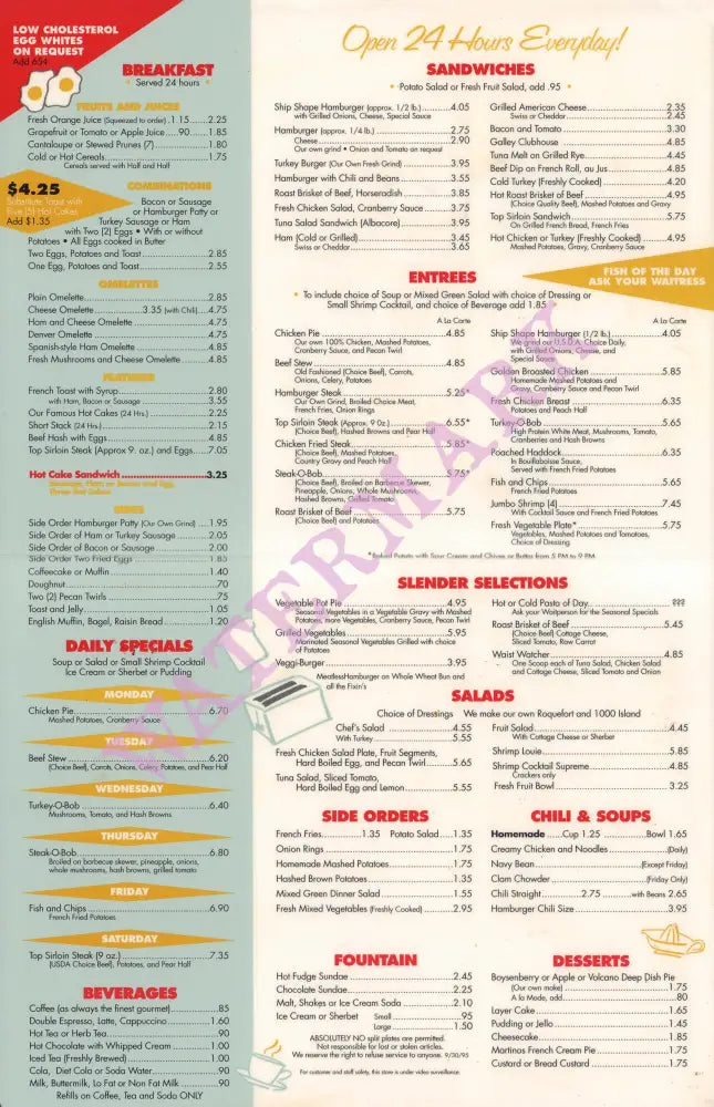True to its word, Ships was open 24 hours a day, seven days a week and 365 days a year, and generations of Los Angelenos dined there, sometimes twice a day. One customer claimed he'd eaten at his local Ships every day for ten years.