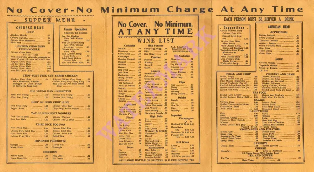 “One of the best known Jazzeries in Harlem. A dancy, scorchy floor show and first-rate dance orchestra. This is the nicest of the places sometimes referred to as "black and tans," chiefly the clientele is mixed. When Broadway lights dim and flicker out and waiters in local nightclubs languidly stack chairs on the dance floors, when saxophone players, limp from an evening of enthusiastic tootling, duck wearily into the subway, when downtown proprietors gleefully tally up the night's receipts and the first clank of milk vans is discernible through Broadway's dissipated roar, all Broadway heads to Harlem. For Harlem is to New York what Montmartre is to Paris, a spontaneous, riotous, everlasting round of jazz and jazzmania.” From Dining in New York by Rian James 1930s