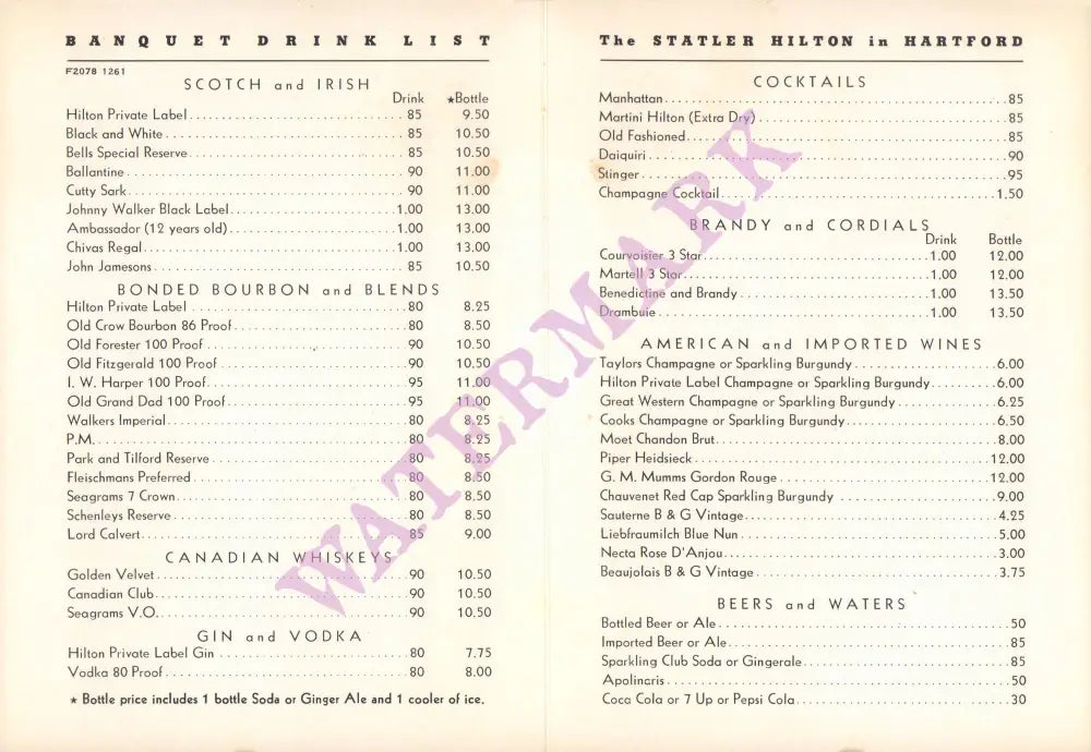 The business grew to a chain of hotels across the US and went into partnership with Hilton Hotels. This menu is from the Statler Hilton in Hartford, Connecticut, which opened in 1954 and was demolished in 1990.