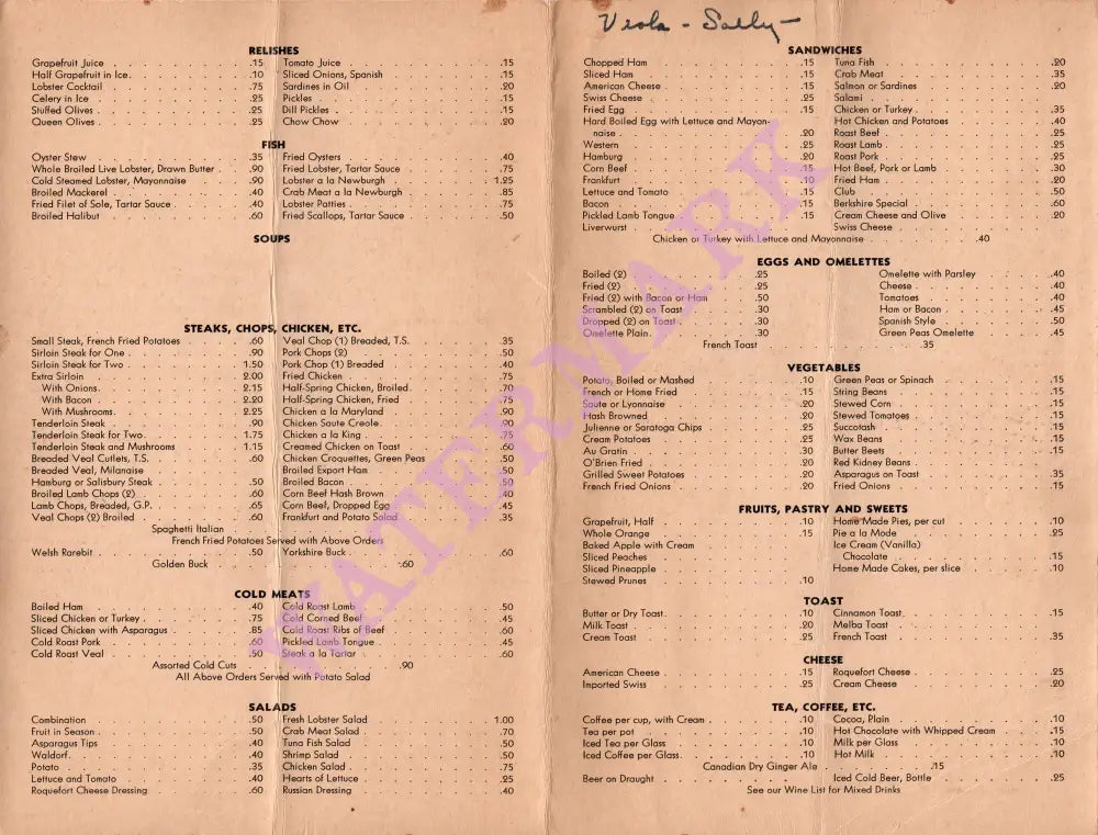 The cat clock was the idea of proprietor Charles Chantis, a Greek-born chef who trained in France, and who came to America to open his own restaurant. There was a dining area at the front of the property and a dimly lit bar and lounge area at the back. On weekends, there was dancing. We found an advertisement for Ray Dorey and his band who played there.