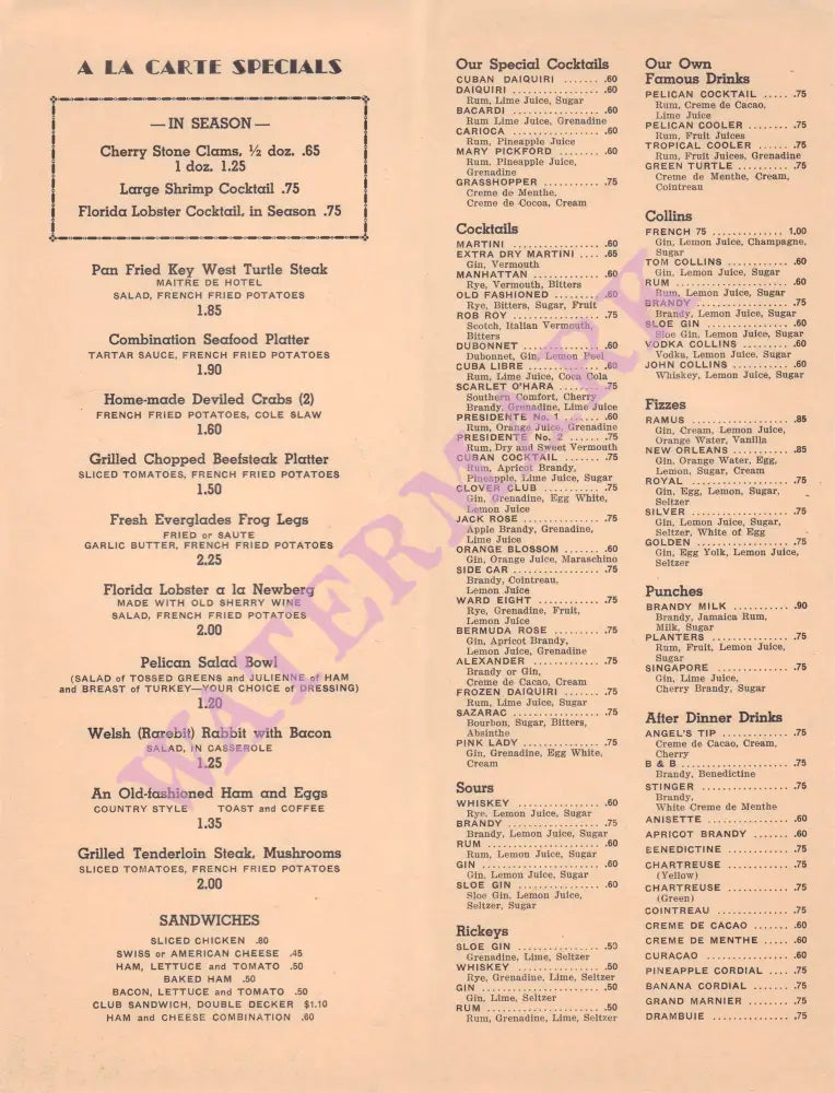 The Pelican, which opened in 1938, was a landmark restaurant in what would have been a popular and growing Florida tourist resort at the time and its owner Henry Henriquez was ‘a pioneer purveyor of piscatorial palate pleasures.’ That’s someone who served good fresh seafood, to you and me.