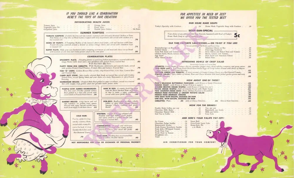 Nevertheless, the Purple Cow lost none of its popularity and it was adopted by the Pick Corporation as the name of their restaurants attached to hotels, to signify that they were different to other establishments.