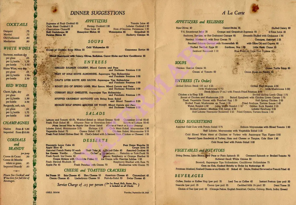 This highly stylized menu cover was for the Roosevelt Grill, a restaurant within the Roosevelt Hotel in New York City.