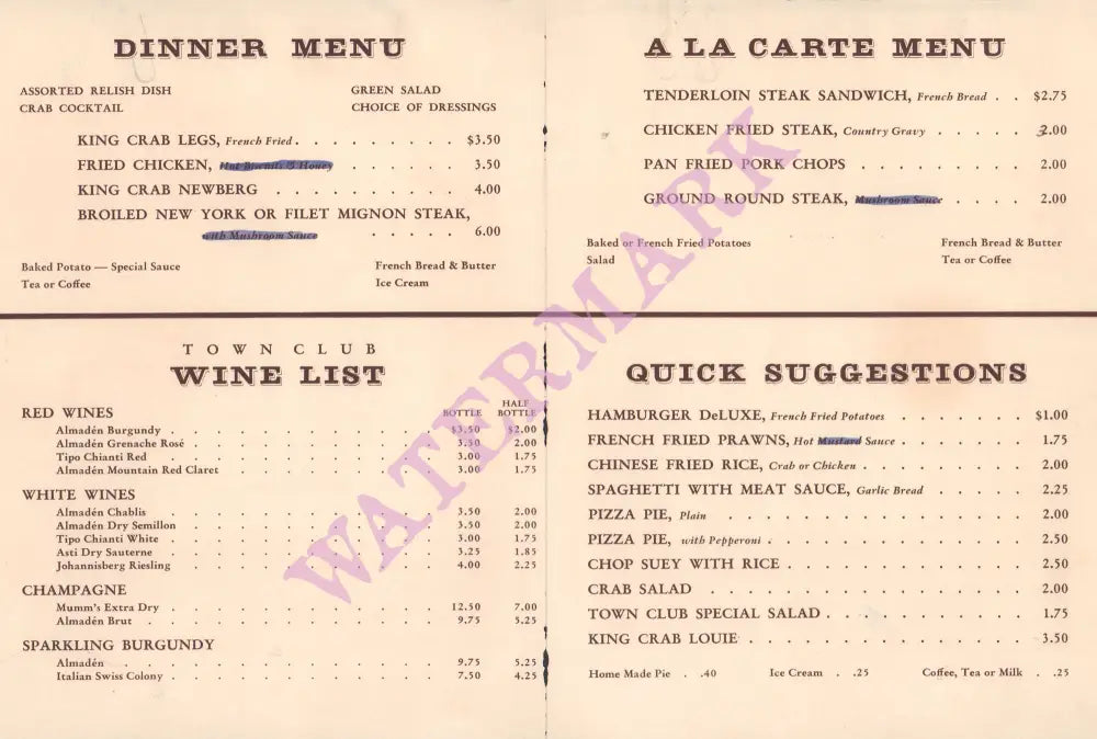 From the prices, we believe this menu is from the 1970s. So far, we haven’t been able to track down much information about the restaurant because it closed decades ago. We will update when we can.