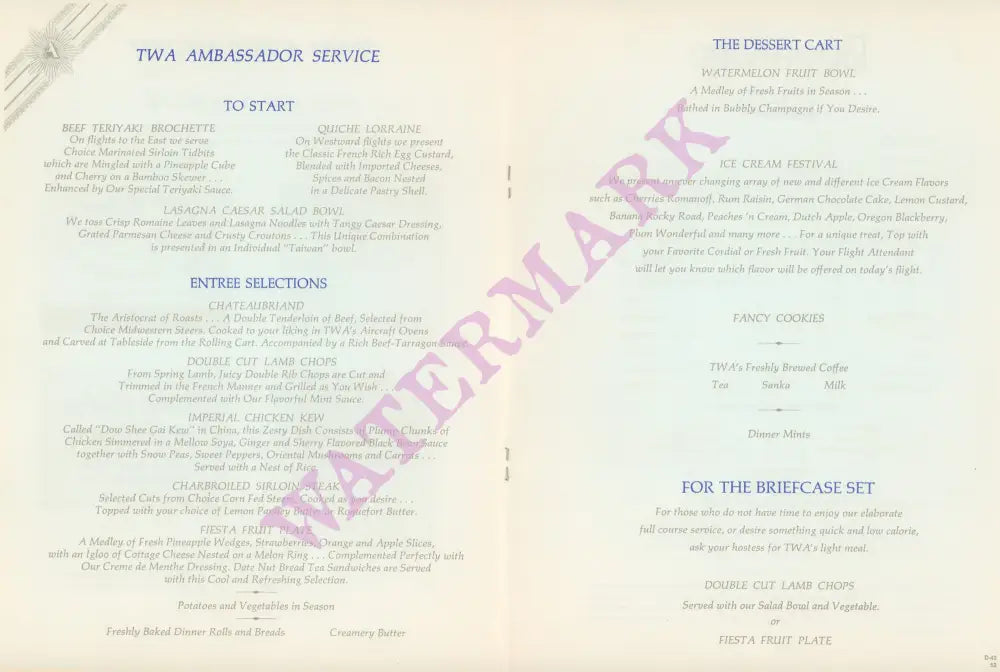 TWA Ambassador Class, St. Louis In-Flight Menu Art 1970s