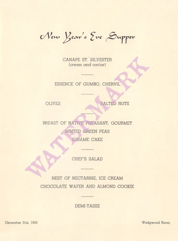 This menu epitomizes a carefree night out and is dated New Year’s Eve in 1947.